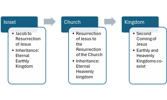 Therefore, the land of Israel is not promised to those of Jewish descent who were born after the end of the Mosaic Covenant, after the creation of the Church. Descendants of Jacob who believe the gospel of Jesus Christ become part of the Church, the Body of Christ which has a separate heavenly inheritance distinct from the earthly inheritance of those under the Mosaic Law. After the resurrection of the Church, God will resume his dealings with Israel and fulfill their covenants. [4]